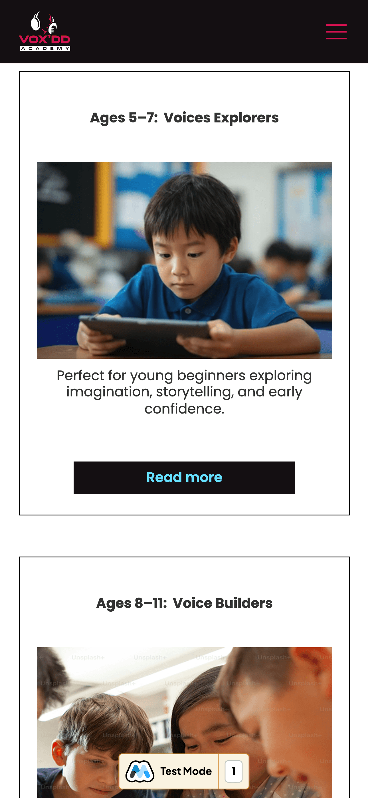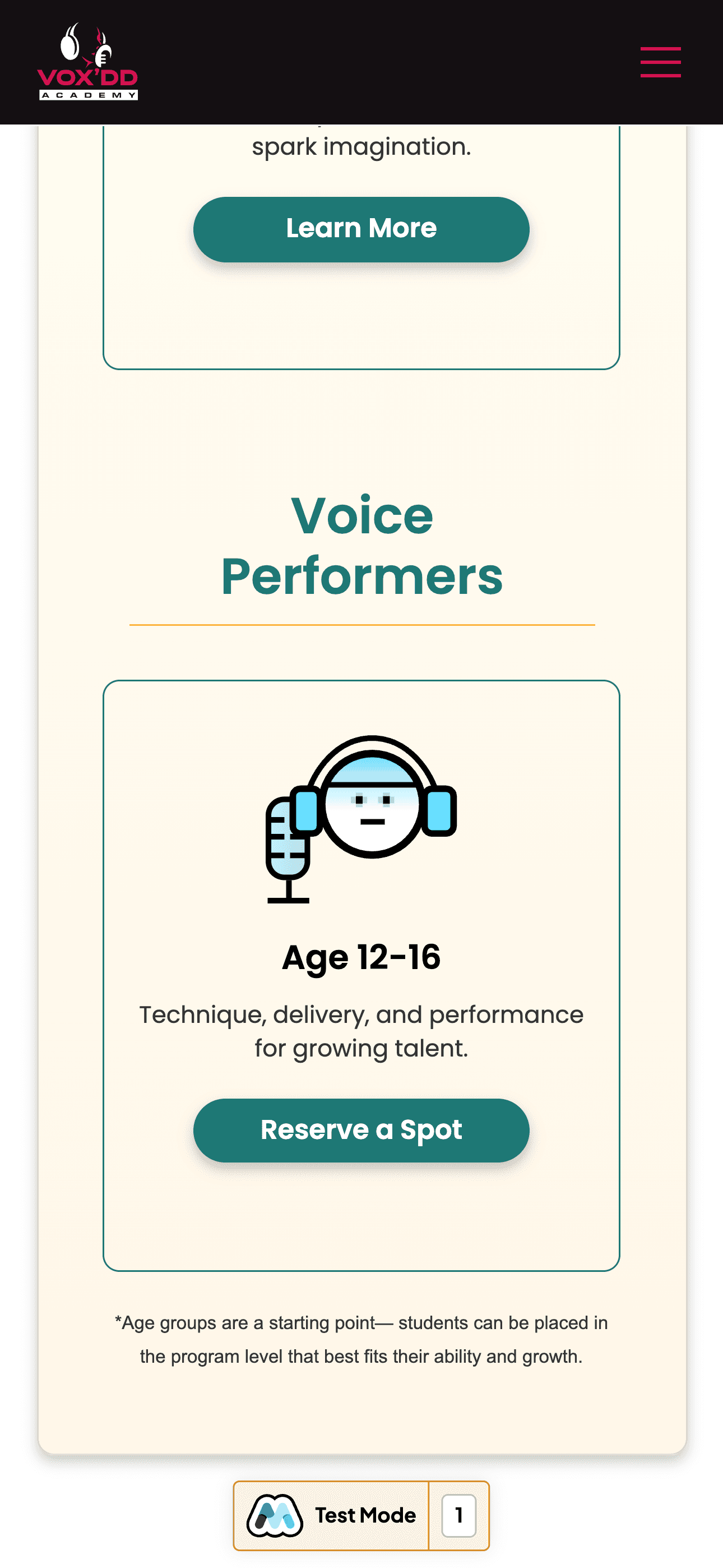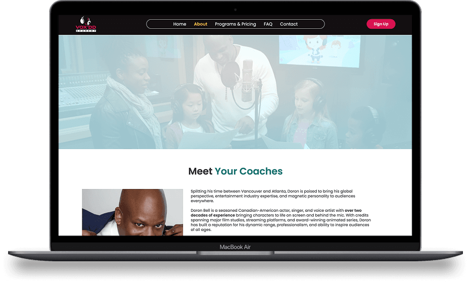 I led the design of a modern, parent friendly website for Vox’DD Academy, creating a clear program structure, expressive visual identity, and intuitive booking paths that support future curriculum and media expansion.