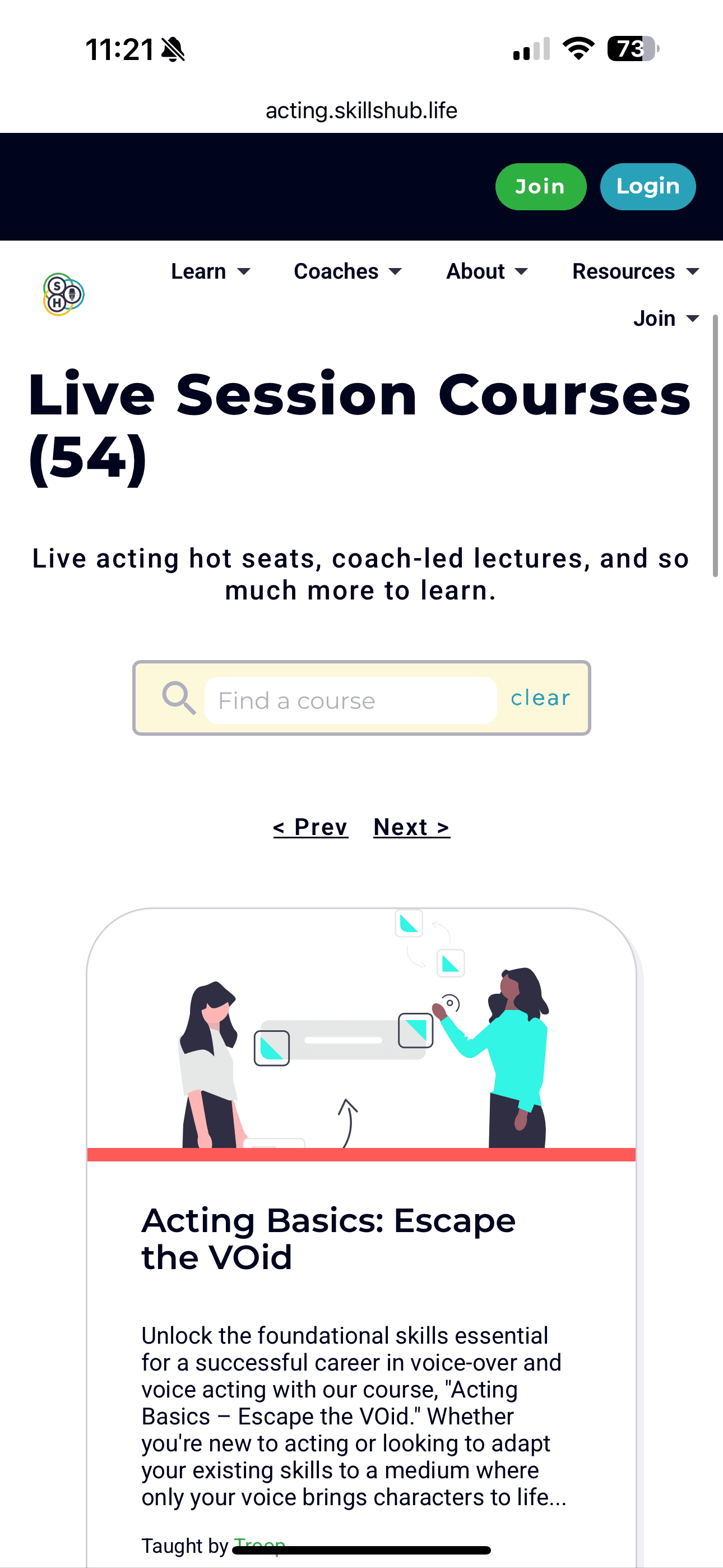 Early discovery focused on understanding how acting and voice coaching platforms present their services and where opportunities existed to improve clarity, trust, and flow.