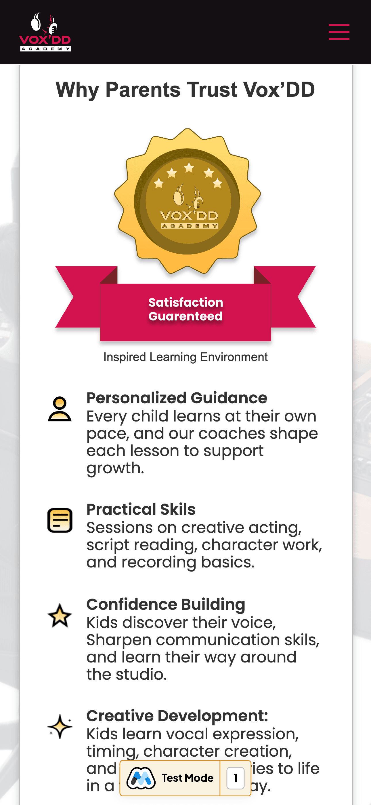 A polished and engaging website for a children’s voice acting academy that guides parents with clarity and inspires young talent.